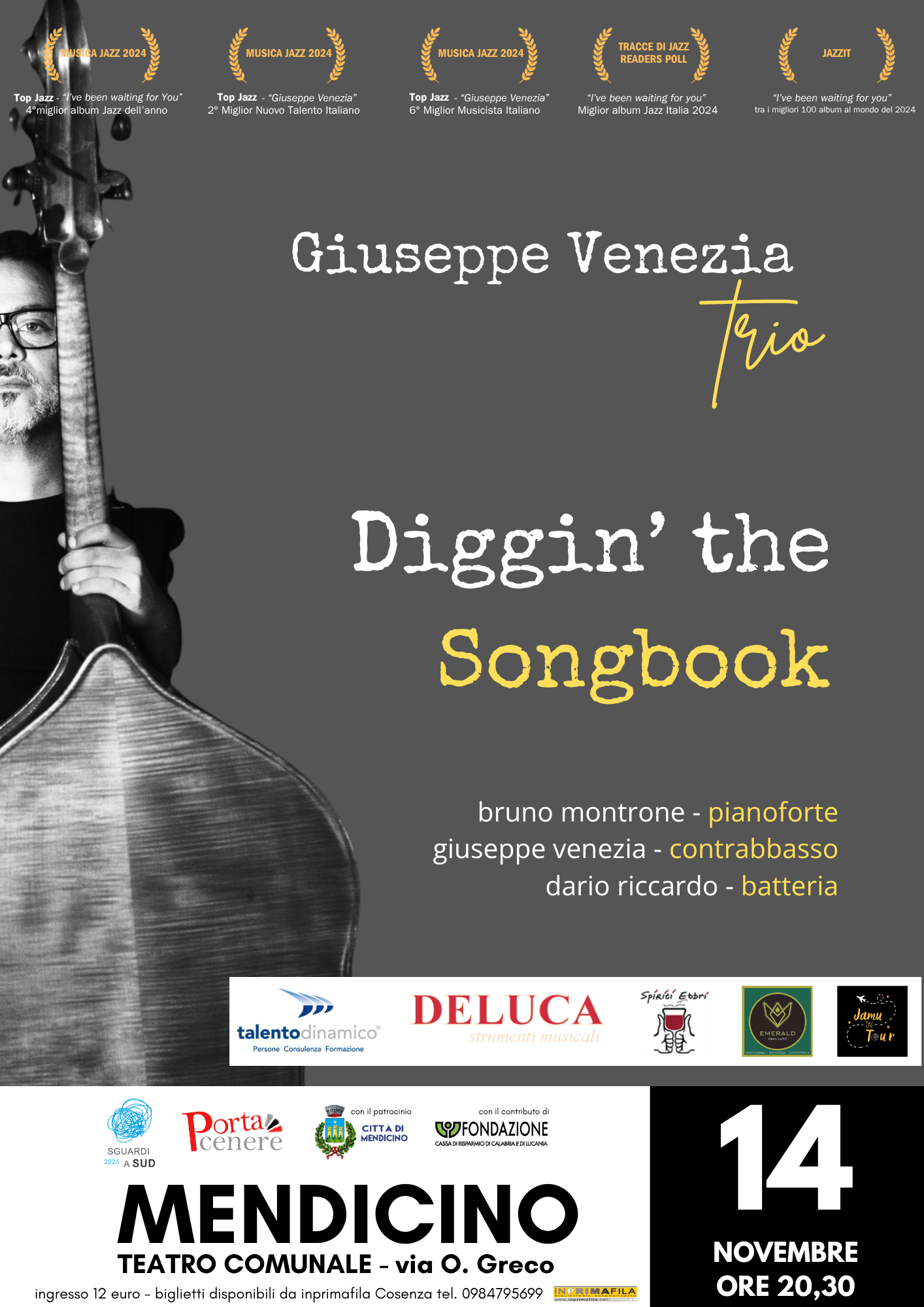 La rassegna si aprirà venerdì 14 novembre alle ore 20.30 con “Diggin’ the Songbook”, trio guidato dal contrabbassista Giuseppe Venezia, affiancato da Bruno Montrone al pianoforte e Dario Riccardo alla batteria. Le melodie evocative del pianoforte, il ritmo pulsante della batteria e le linee profonde del contrabbasso diventano parole di un racconto senza voce. Il repertorio spazia dagli standard immortali del jazz a composizioni originali, reinterpretate con uno sguardo contemporaneo. Ogni nota diventa dialogo, ogni silenzio diventa spazio narrativo. Il pubblico viene trasportato in un flusso di energia e delicatezza, dove il jazz diventa esperienza sensoriale ed emotiva.